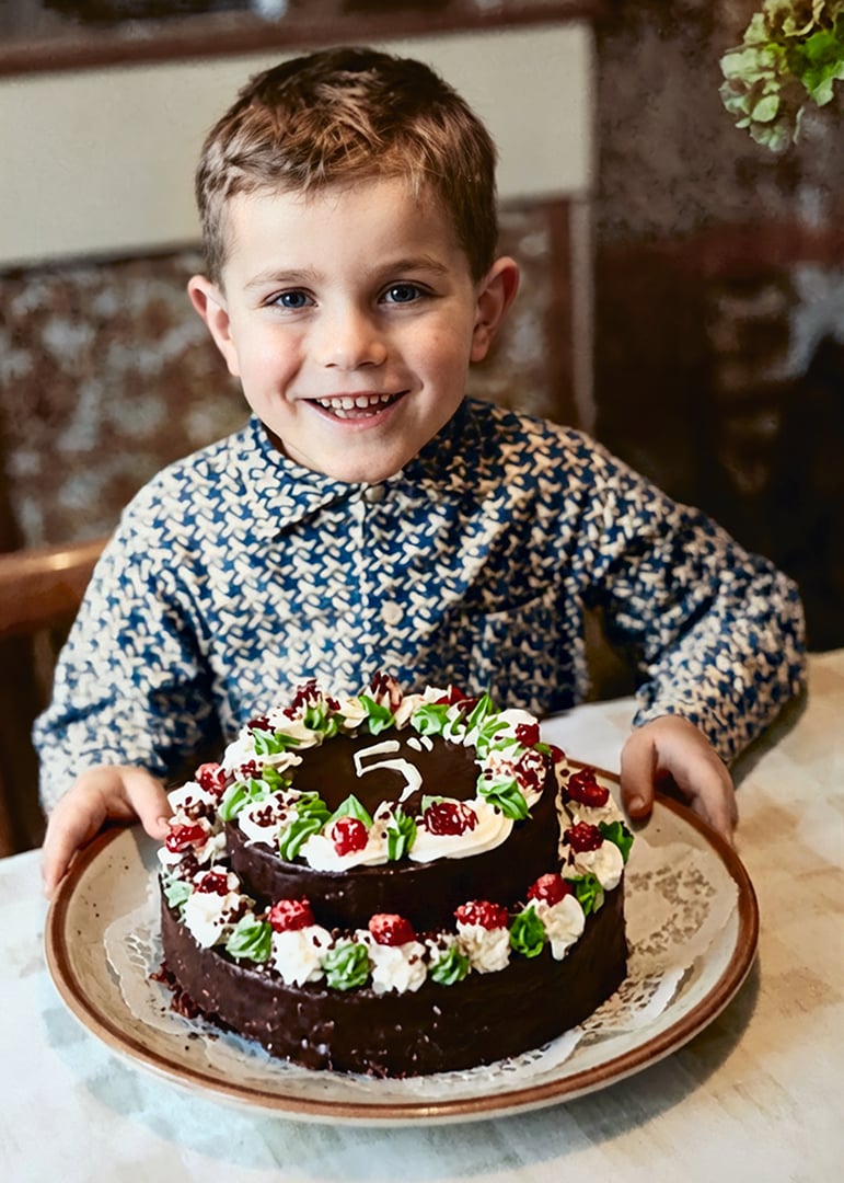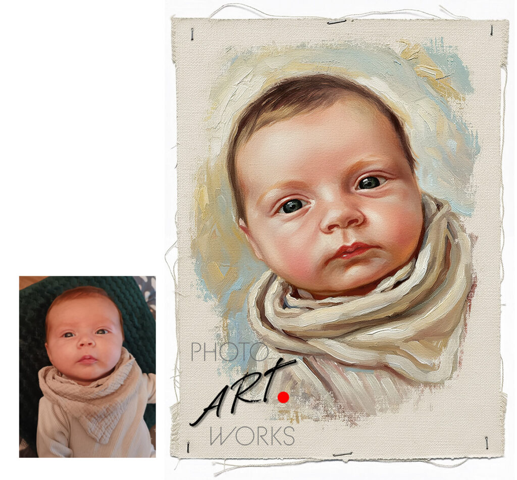 Tak toto je moje vnučka Andrea. Jsou jí tři měsíce. Zdrojový obrázek byla normální momentka na mobil 10x15 cm. Tak jsem se nechal inspirovat a pak už jsem jen fotomaloval a fotomaloval a výsledek je tisk na archivní matný papír o rozměru 30 x 42 cm.